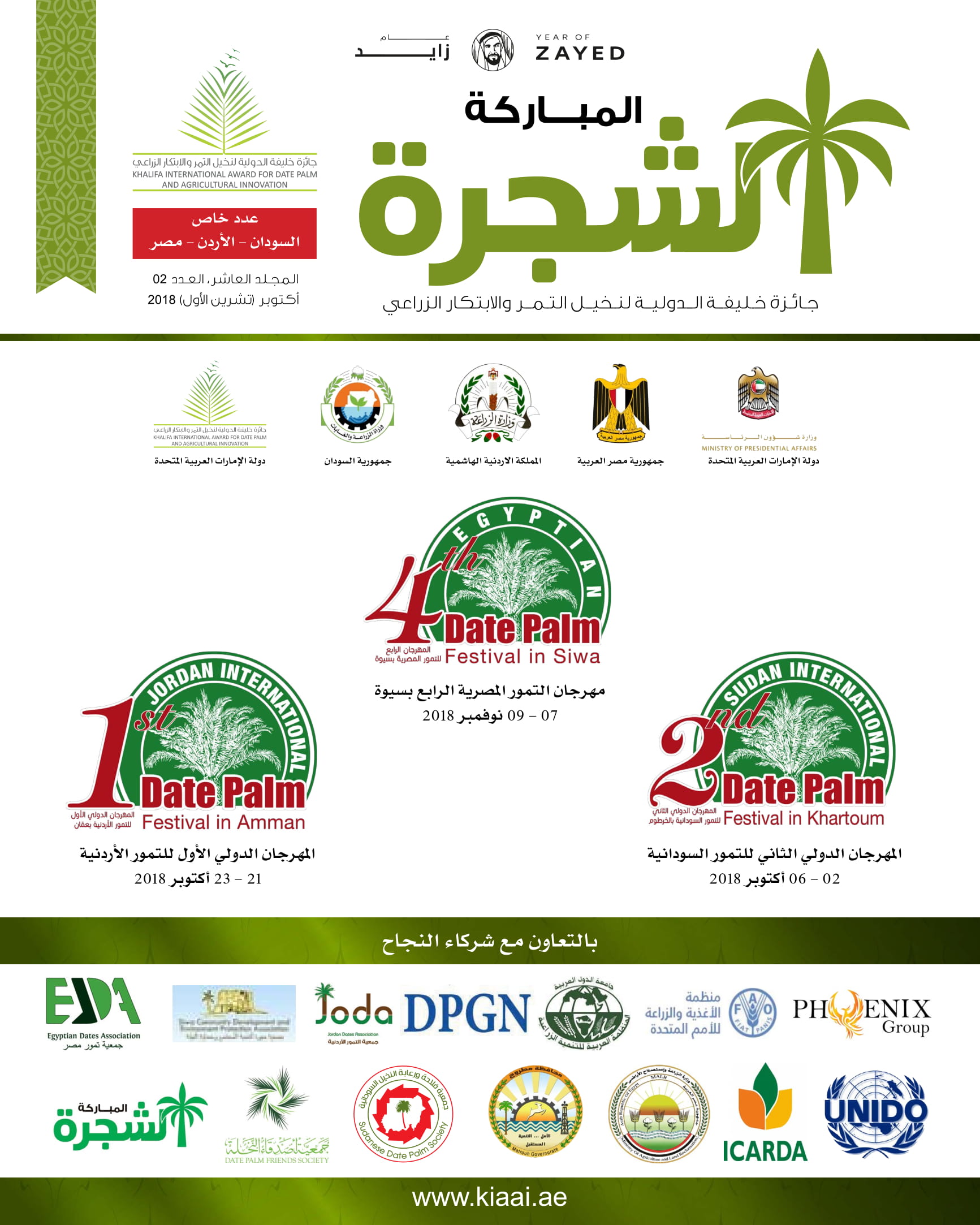 تعمل الأمانة العامة لجائزة خليفة الدولية لنخيل التمر والابتكار الزراعي على إصدار عدد خاص من مجلة الشجرة المباركة يضم في جنباته مجموعة من البحوث والدراسات العلمية المتعلقة بالمهرجان الدولي الأول للتمور الأردنية 2018 بمشاركة نخبة من الباحثين والأكاديميين المختصين بزراعة النخيل وإنتاج التمور على المستوى العربي والدولي. وسوف يتم توزيع العدد الخاص من مجلة "الشجرة المباركة" على جميع المشاركين ضمن فعاليات المهرجان.